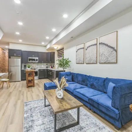 New 2Br Across From Fairmount Park - 10 Mins To Dt Apartment offers a fully equipped kitchen, as well as comforts like climate control. The apartment features a bathroom with hairdryers. Furthermore, a washing machine is available.